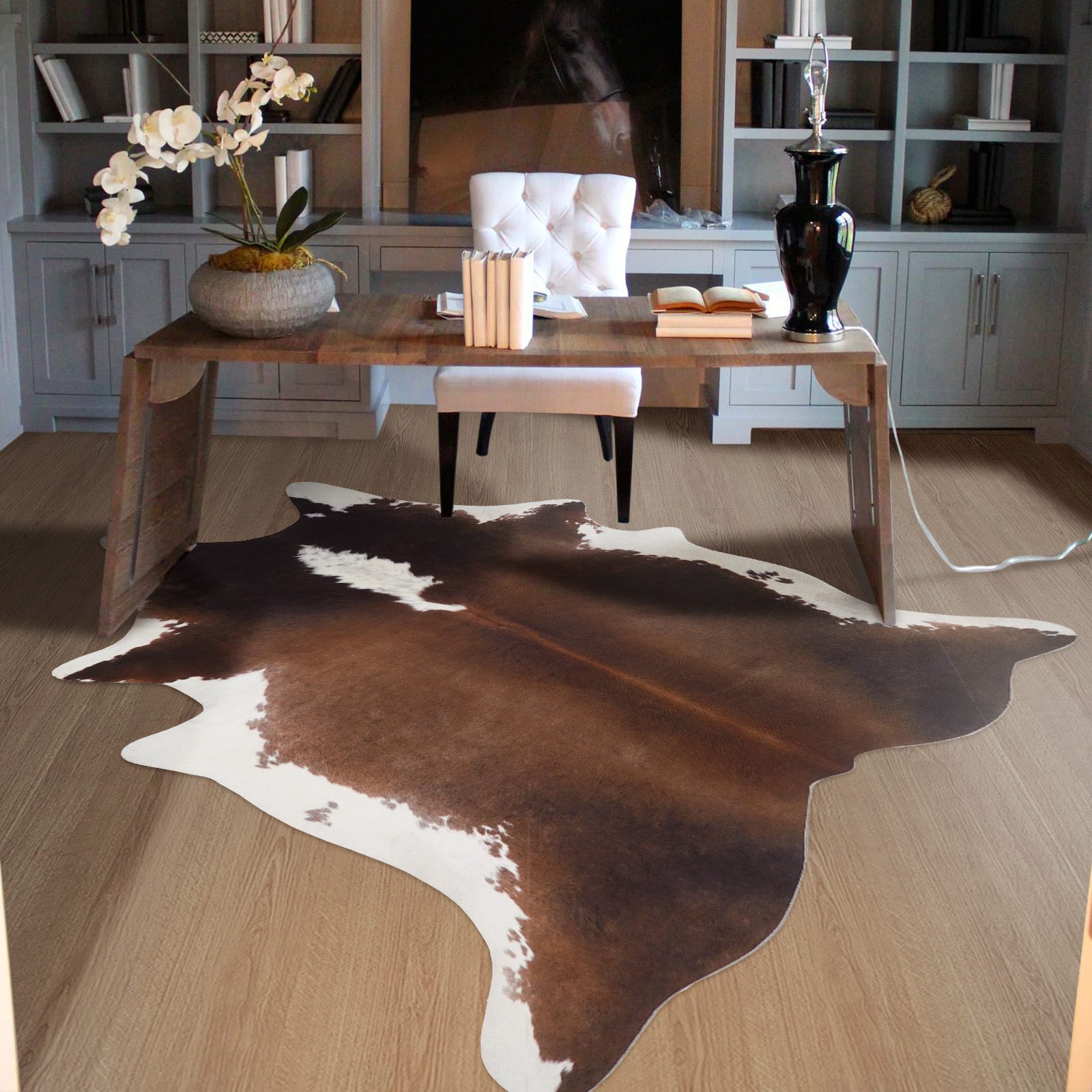 Alfombra de Piel de Vaca Marrón y Blanca para Oficina, Dormitorio, Sala de Estar, Alfombras de Piel de Vaca Marrón, Alfombras de Piel de Animal, Marrón y Blanco