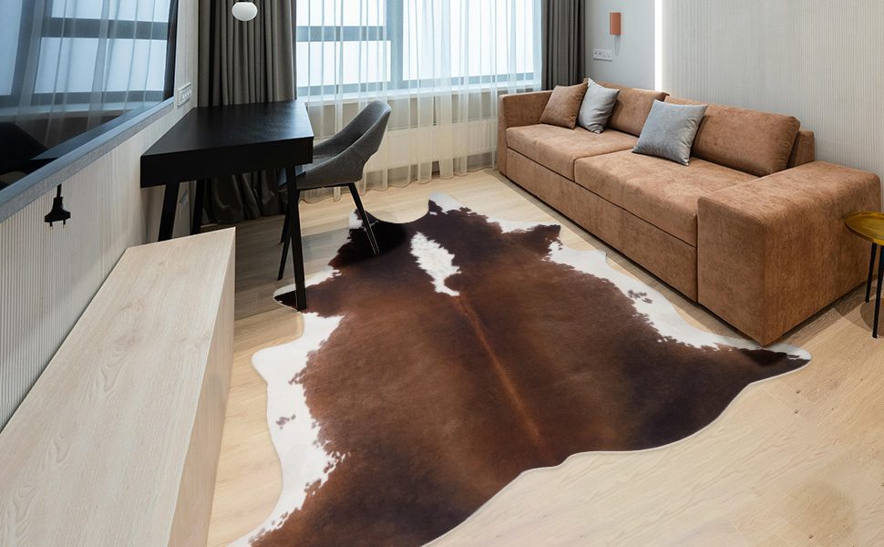 Esta alfombra de imitación de piel de vaca combina el encanto rústico con la elegancia moderna. Con su diseño suave, resistente y antideslizante, es un producto versátil para cualquier hogar.