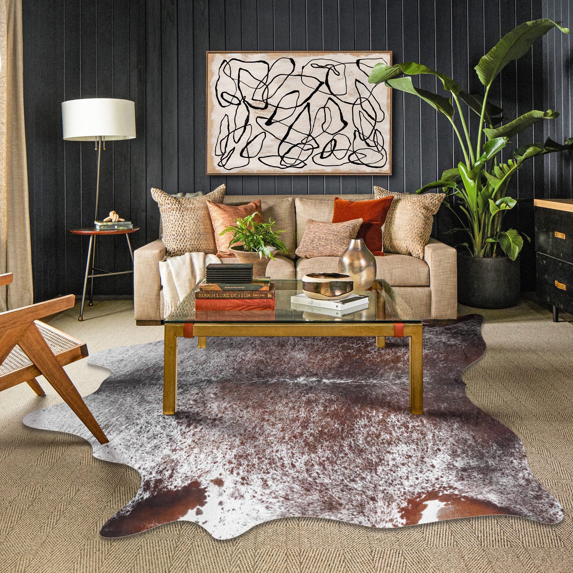 Esta alfombra de estampado animal presenta un exclusivo dibujo de piel de vaca que combina a la perfección la elegancia occidental con un aire bohemio, y es rústica y duradera a la vez.