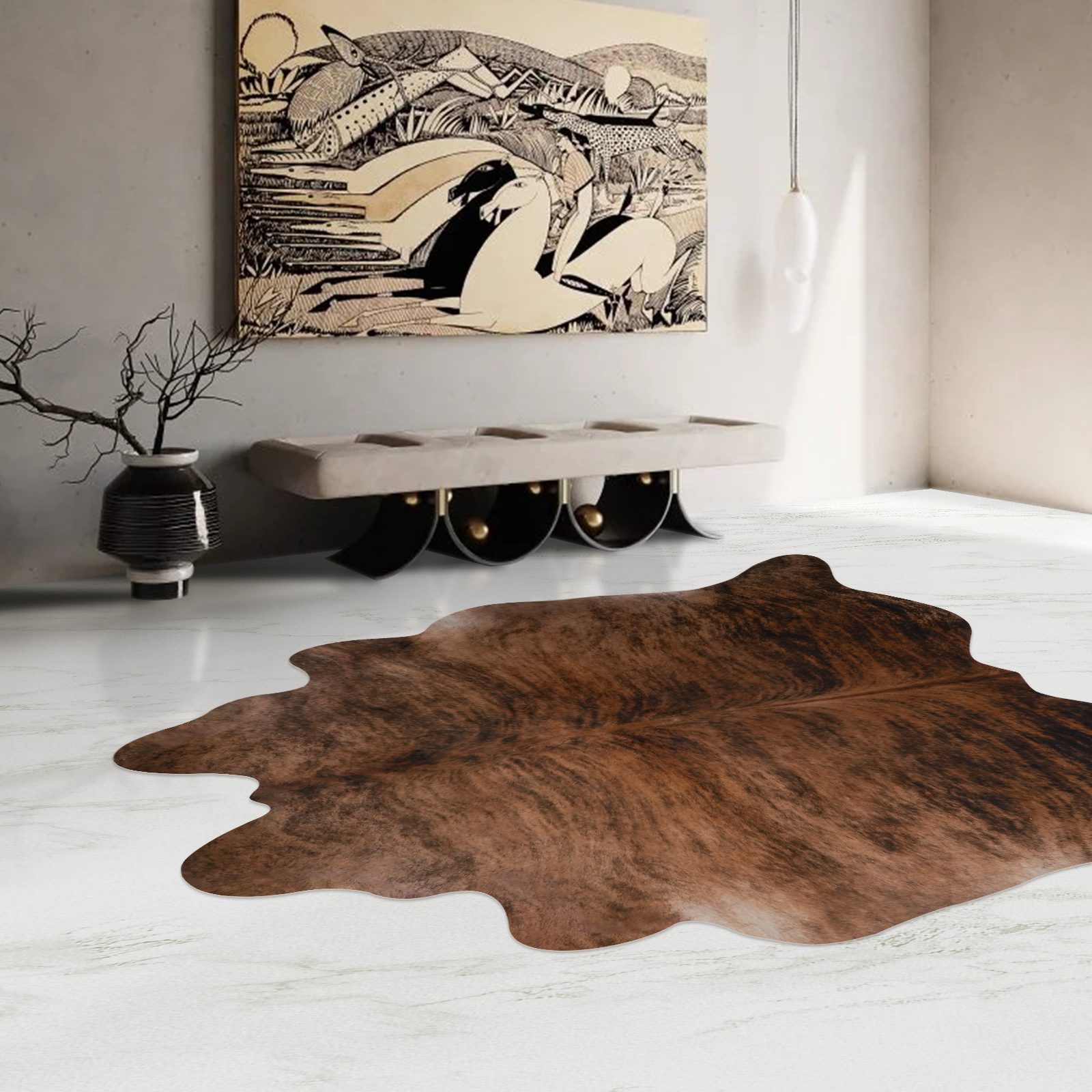 Camine cómodamente sobre nuestras alfombras. Nuestras alfombras de imitación de piel de vaca se seleccionan cuidadosamente por su textura suave y su tacto elegante.