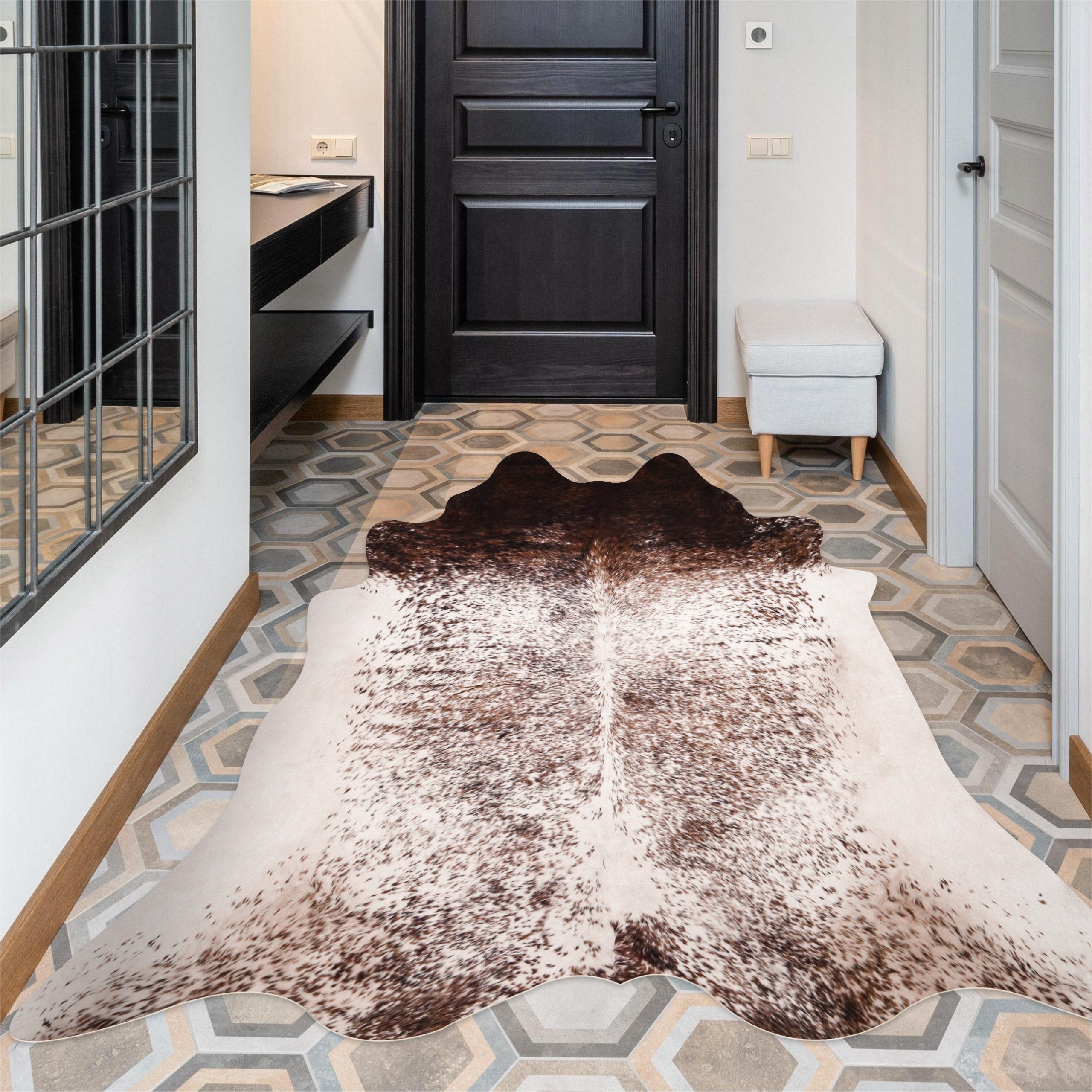 AJOUTER DE L'ÉCLAT À VOTRE MAISON : Ce tapis en peau de vache est de haute qualité et bien fait ; c'est la décoration de chambre chic parfaite qui attirera l'attention de vos invités grâce à son chef-d'œuvre.