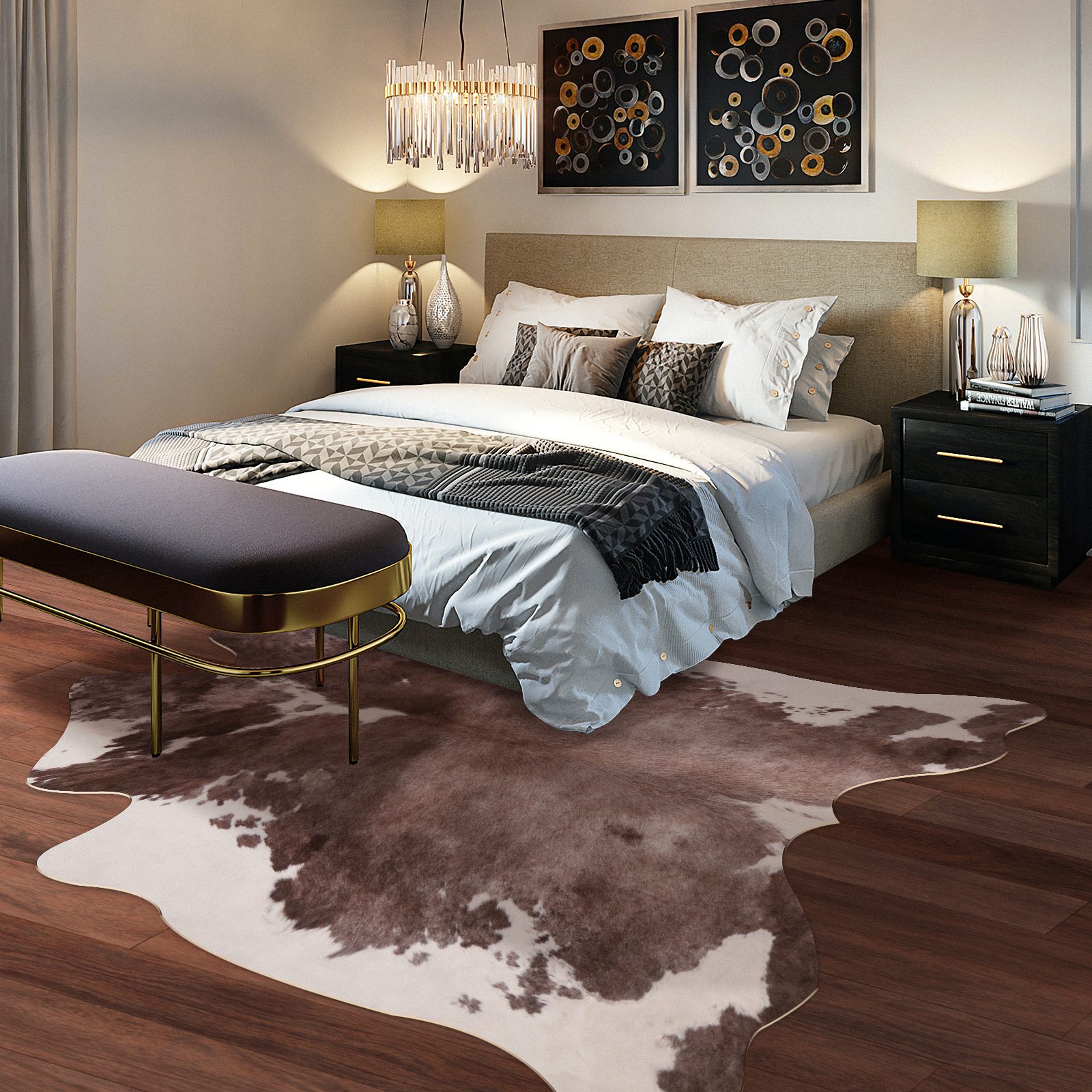 Tapis en fausse peau de vache de qualité supérieure:Doux, coloré et élégant, ce tapis en peau de vache ajoute un charme occidental à tout espace.