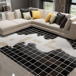 パッチワークの擬似牛革の敷物、黒および白いパッチワークの長方形のカーペット居間、寝室のための西部装飾の牛印刷物の敷物正方形の設計