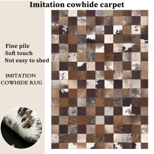 擬似牛革の敷物、パッチワークの長方形のカーペット居間、寝室、台所正方形の設計のための西部の装飾の茶色の牛敷物の牛の印刷物の敷物