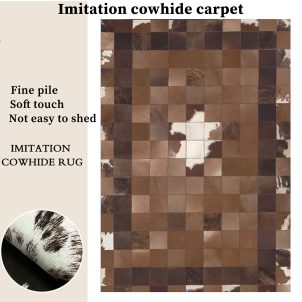 擬似牛革の敷物、パッチワークの長方形の茶色の牛の印刷物の敷物居間、寝室、台所正方形の設計のための西部の装飾の牛の印刷物の敷物