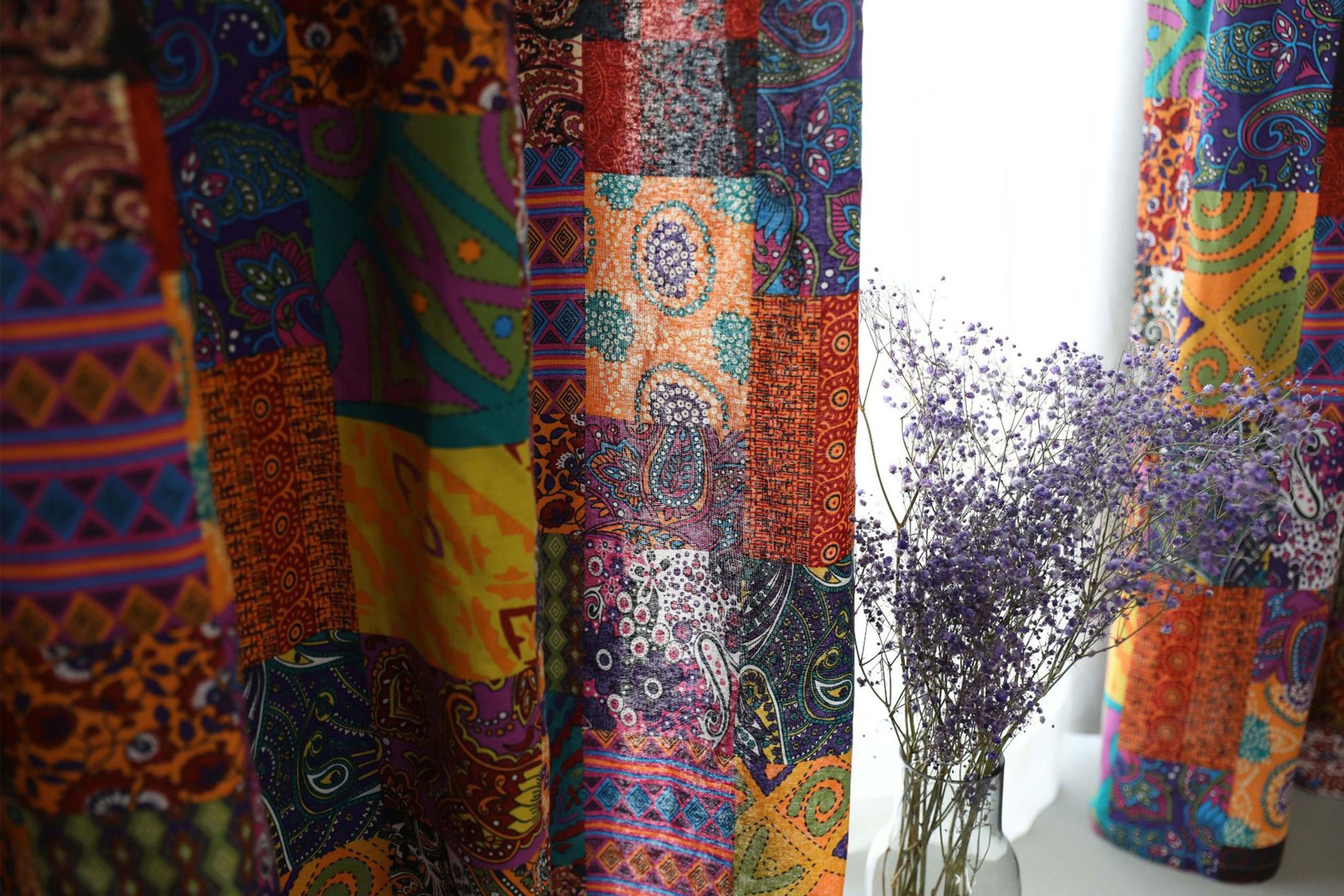 のんびりとした魅力が加わります。 ボーホーカーテン.軽量で通気性のよいコットン混紡素材で、ドレープが美しく、どんな空間にも心地よい風合いをプラスします。