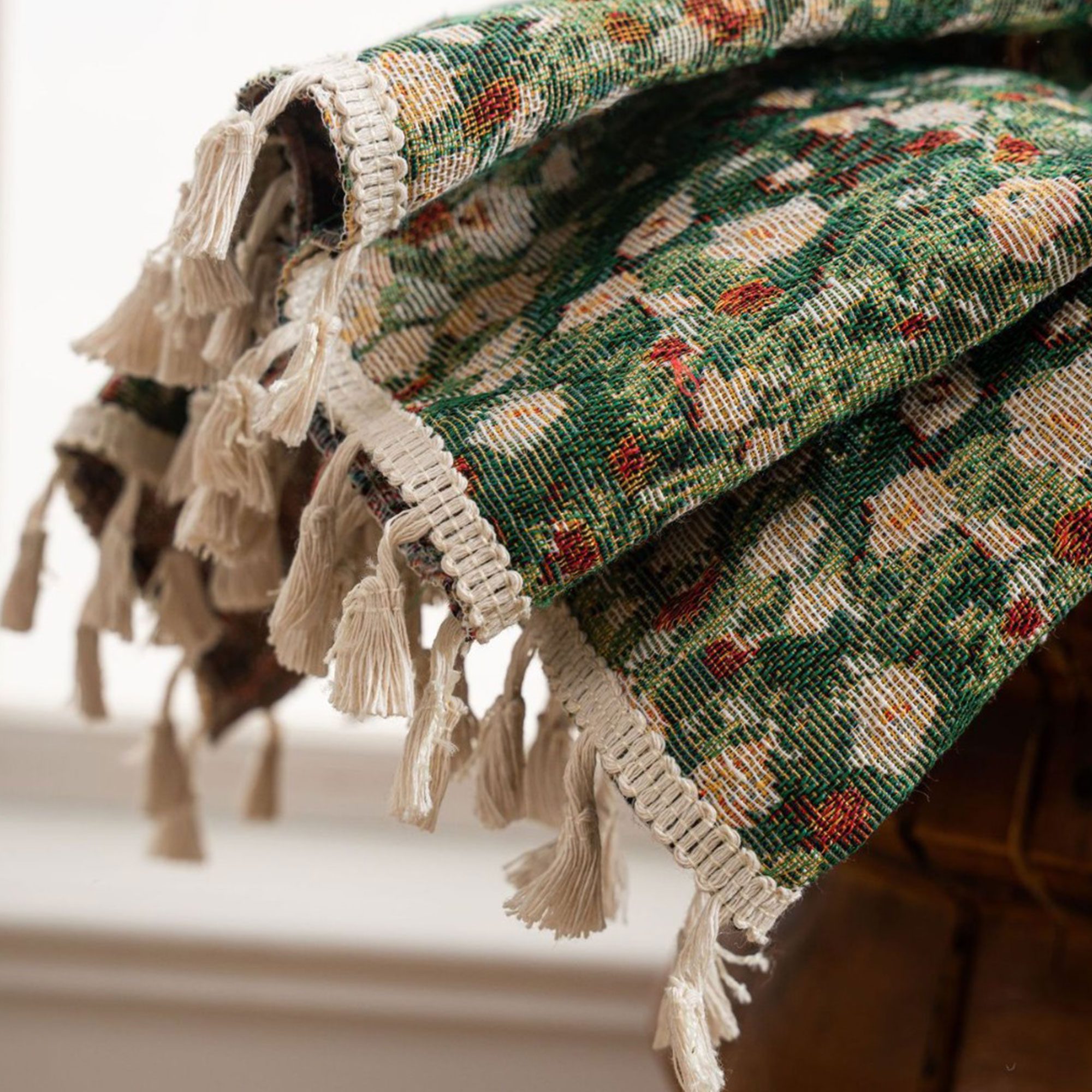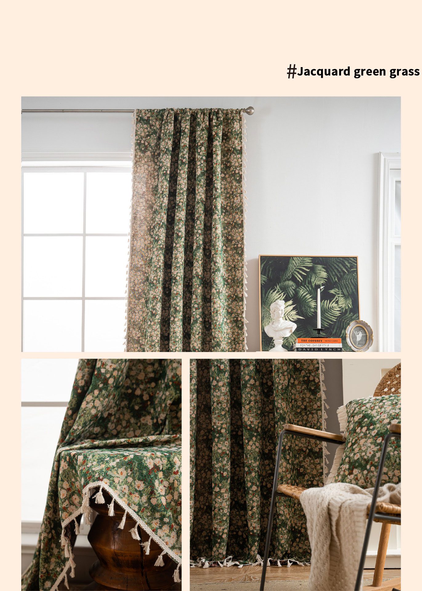 マクラメ模様とタッセルのトリミングが特徴。 カーテン ボヘミアン、ファームハウス、エクレクティックなインテリアに最適です。