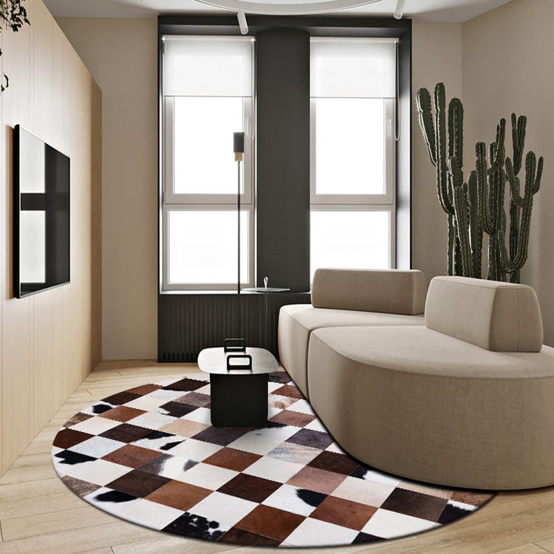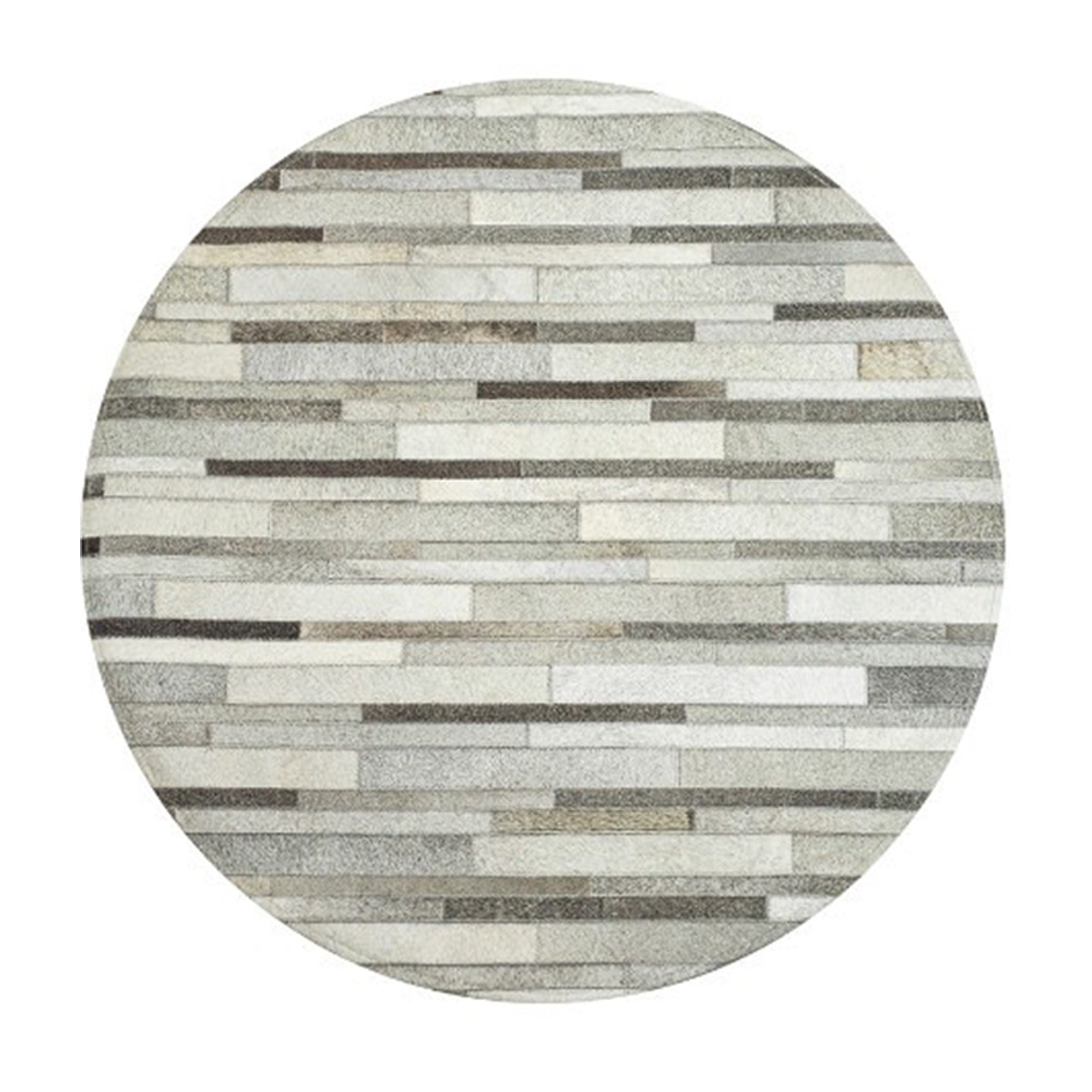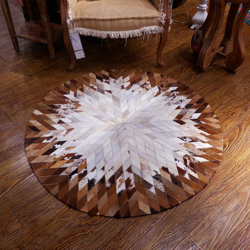 灰色の牛革パッチワーク敷物、円形の革白い牛革敷物西部の家の装飾区域居間、寝室、玄関ドアのための滑り止めの床のカーペット パッチワークの革カーペット