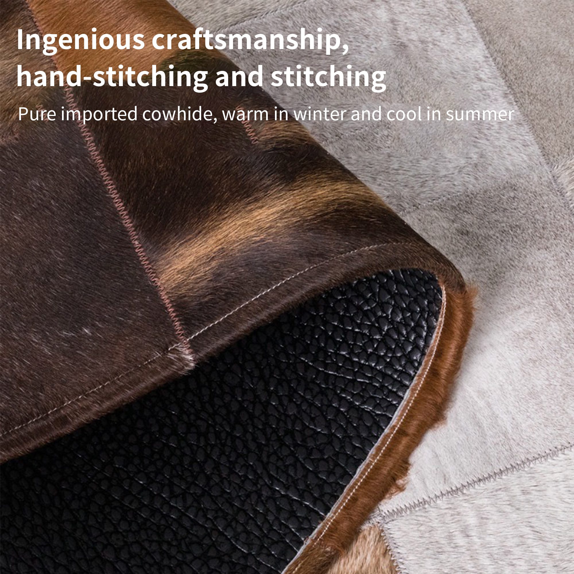 本物の魅力:自然な傷、傷跡、焼印は牛革のストーリーの一部であり、ラグに個性と本物らしさを加えます。