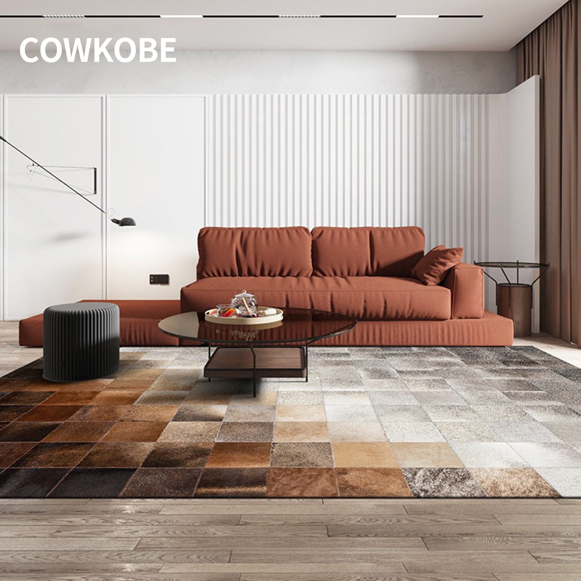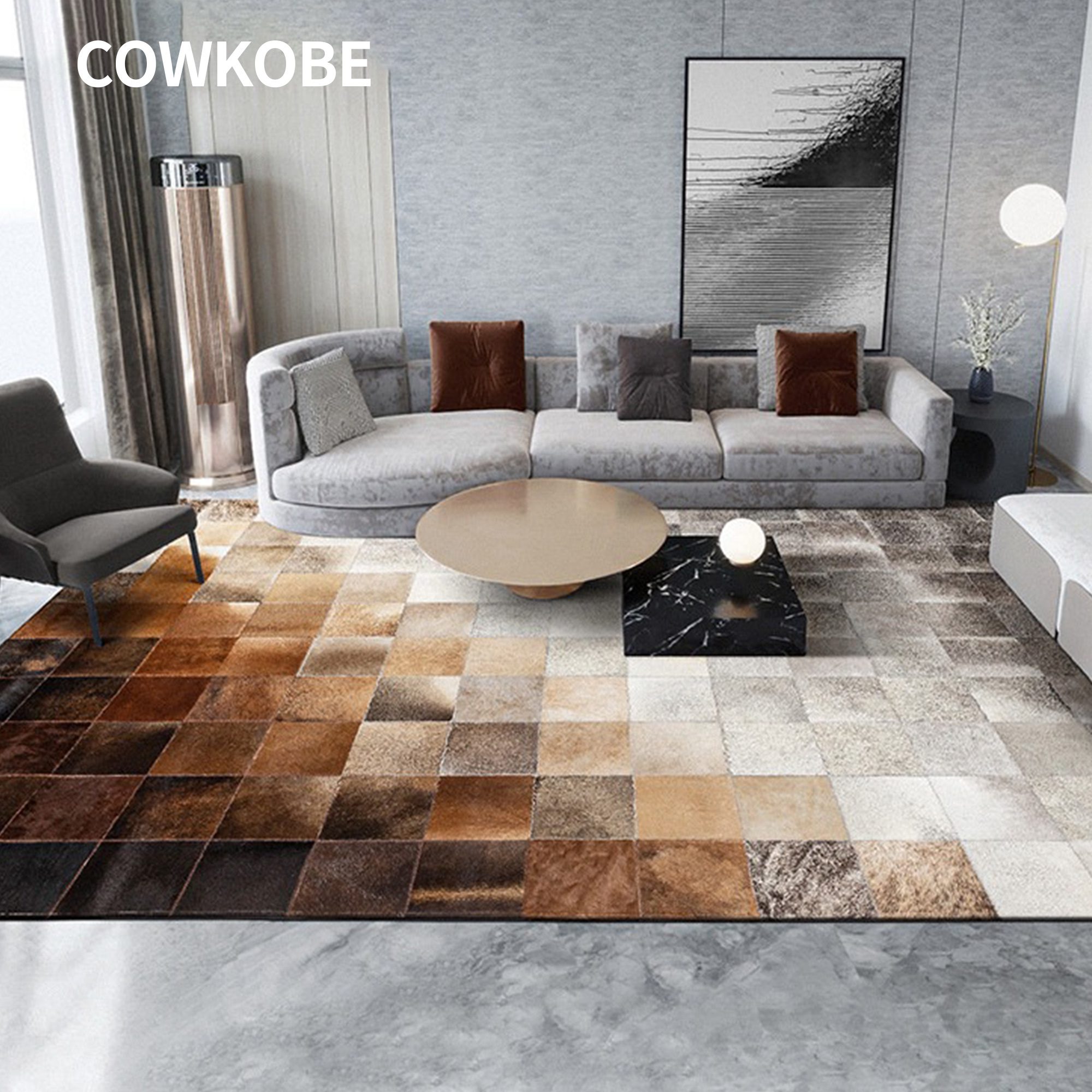これは 牛革パッチワークラグ は見た目が美しいだけでなく、耐久性に優れ、お手入れも簡単です。裏面には滑り止めのスエードが施されているため、ハードウッドやタイルの床でも安定感があり、リビングルームや玄関、ホームオフィスなど、人の出入りが多い場所での実用的な選択肢となります。