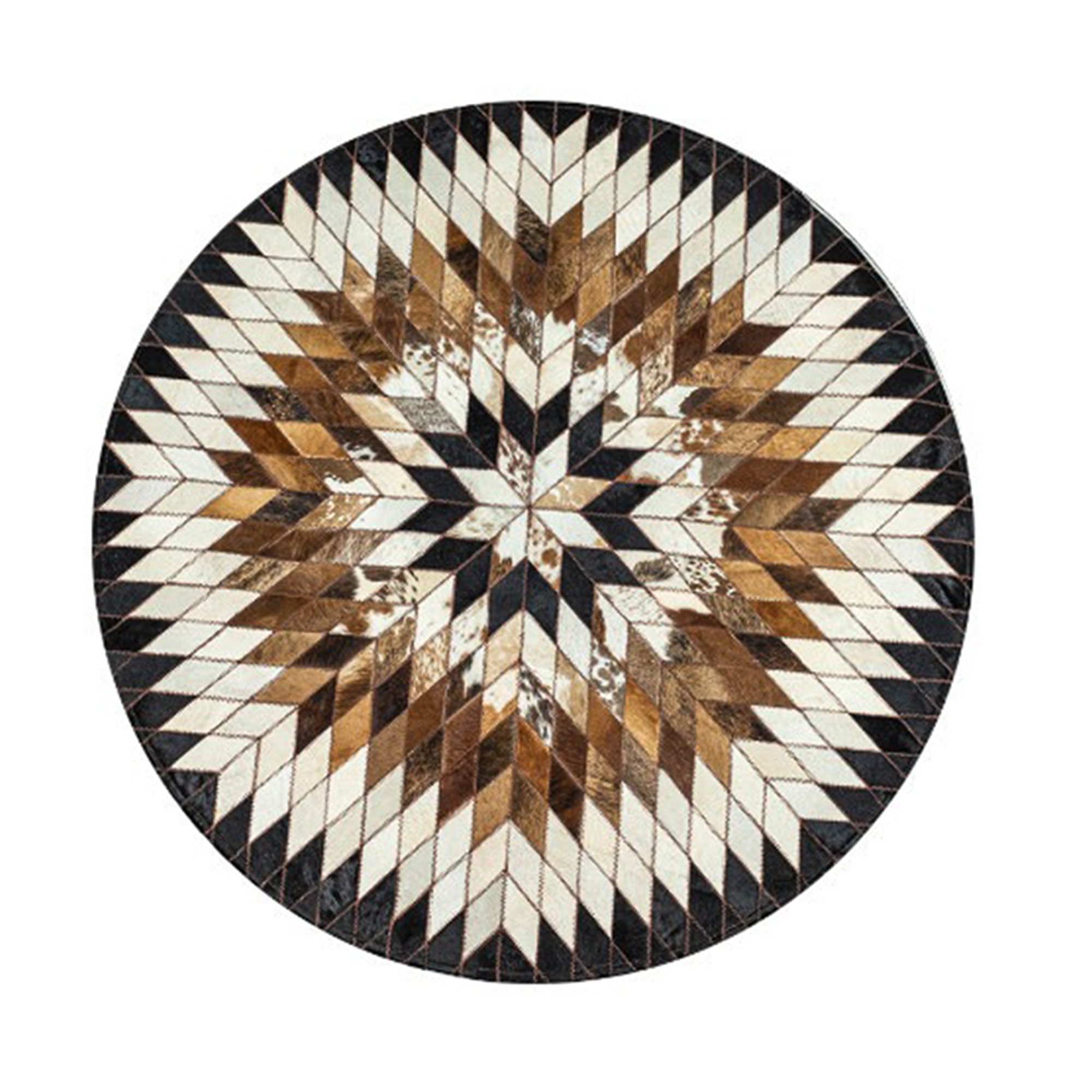 牛革パッチワーク ラグ、ベージュ ラウンド レザー牛革ラグ西洋ホーム デコレーション エリア滑り止め床カーペット リビング ルーム、ベッドルーム、玄関ドアのパッチワーク レザー カーペット