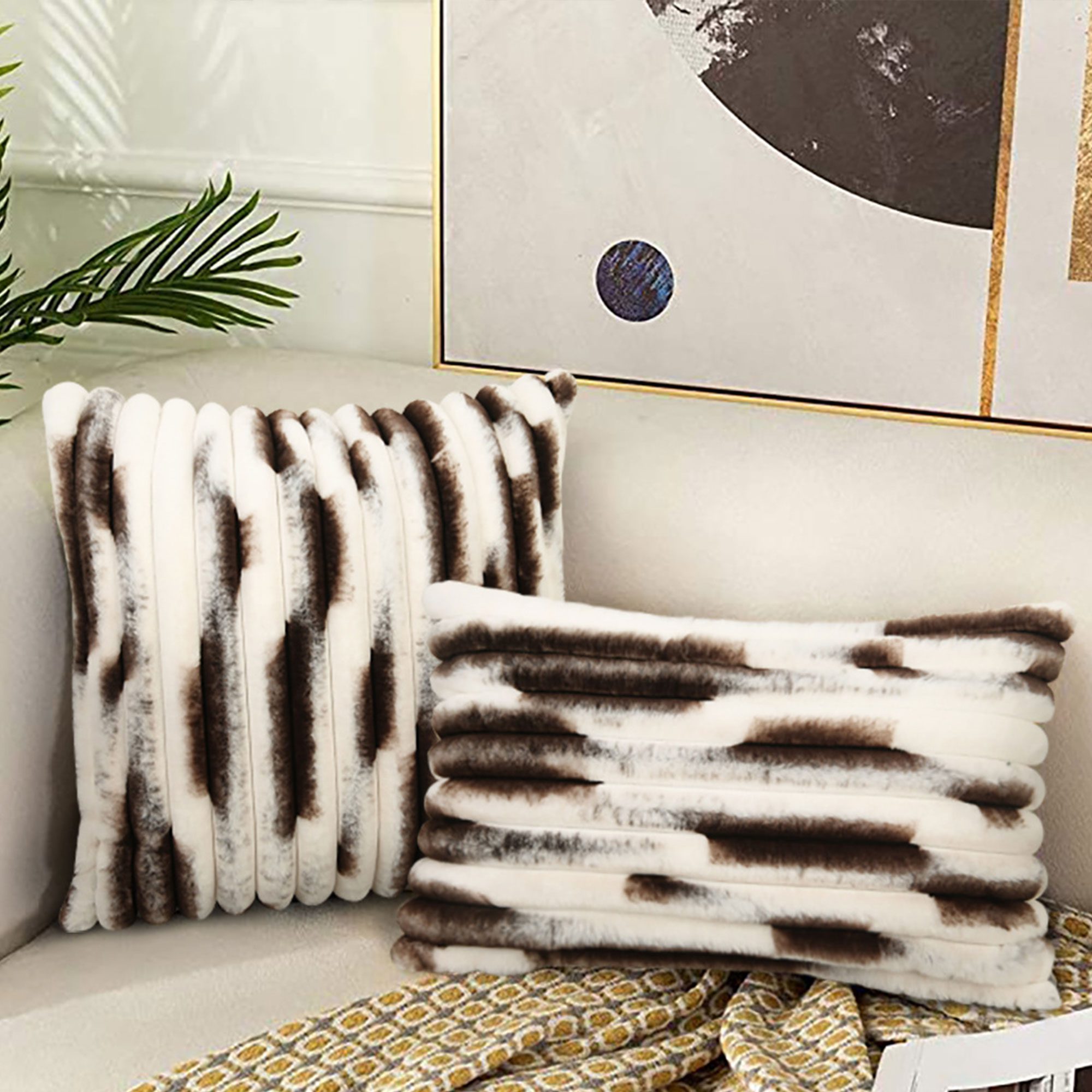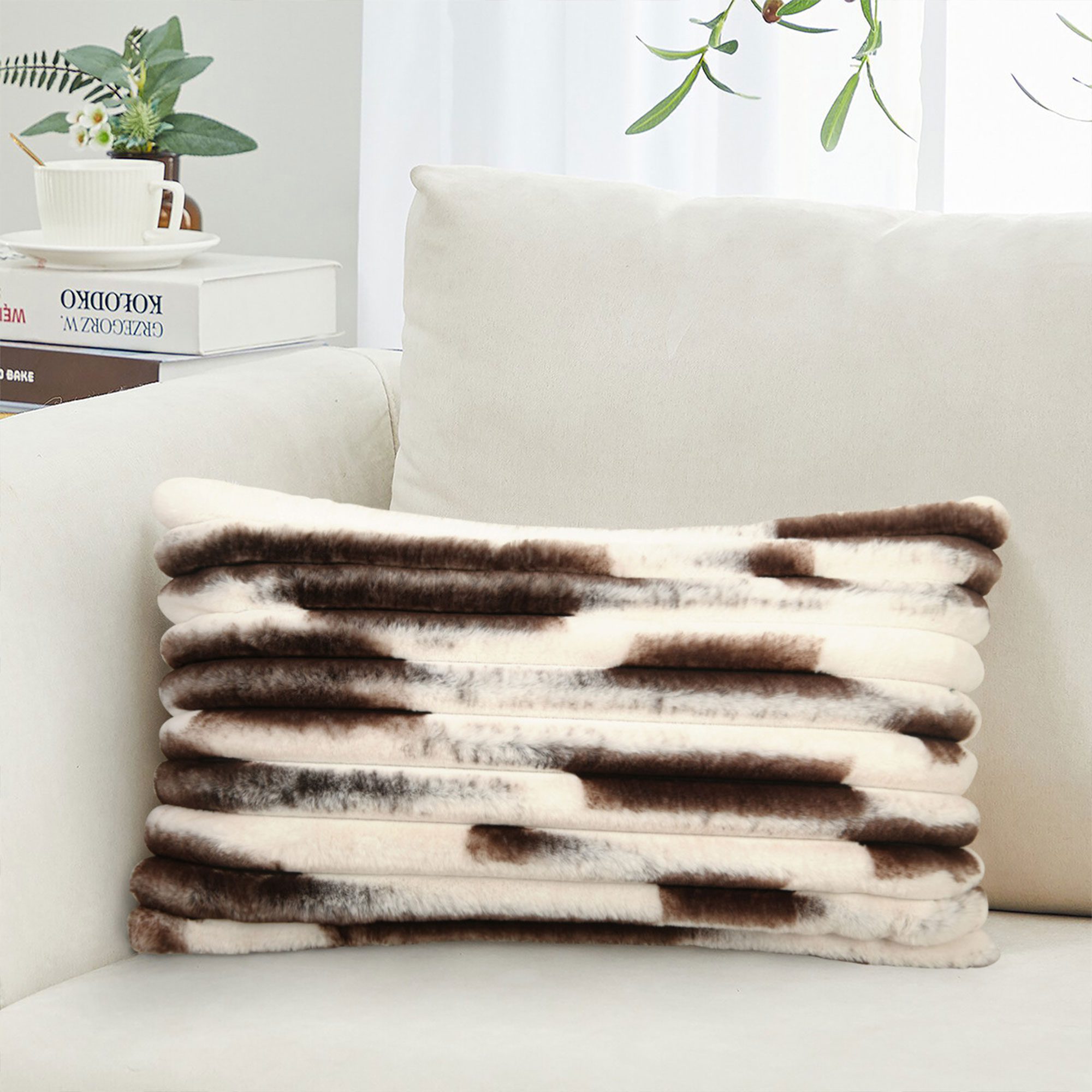 ウエスタンの雰囲気をご家庭に フェイク牛革枕-スタイル、柔らかさ、持続可能性を追求して作られました。本物の牛革の質感を模倣してデザインされたこの無農薬クッションは、大胆な見た目はそのままに、よりソフトでしなやかな感触を提供します。ファームハウス、ボーホー、モダン・ラスティックのインテリアに最適です。