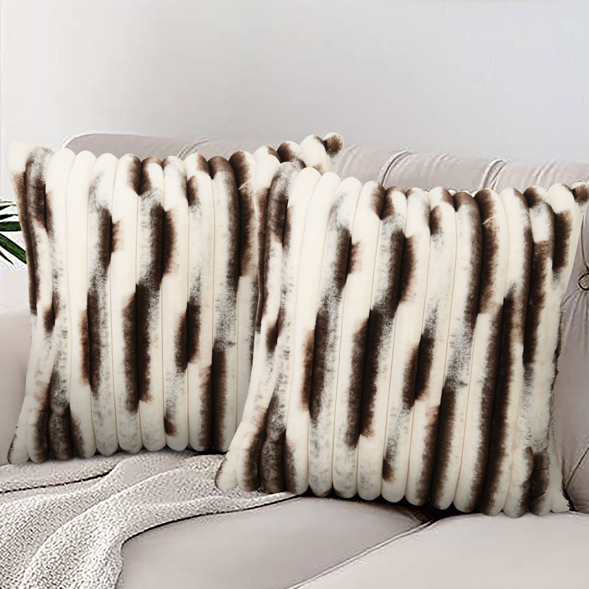 牛の皮の擬似枕、18×18 ブラウンの Corduroy の枕の牛革装飾的な枕牛革投げるソファーのソファーのベッドのための牛革アクセントの印刷のソファ、オリーブ色の中立西部の装飾