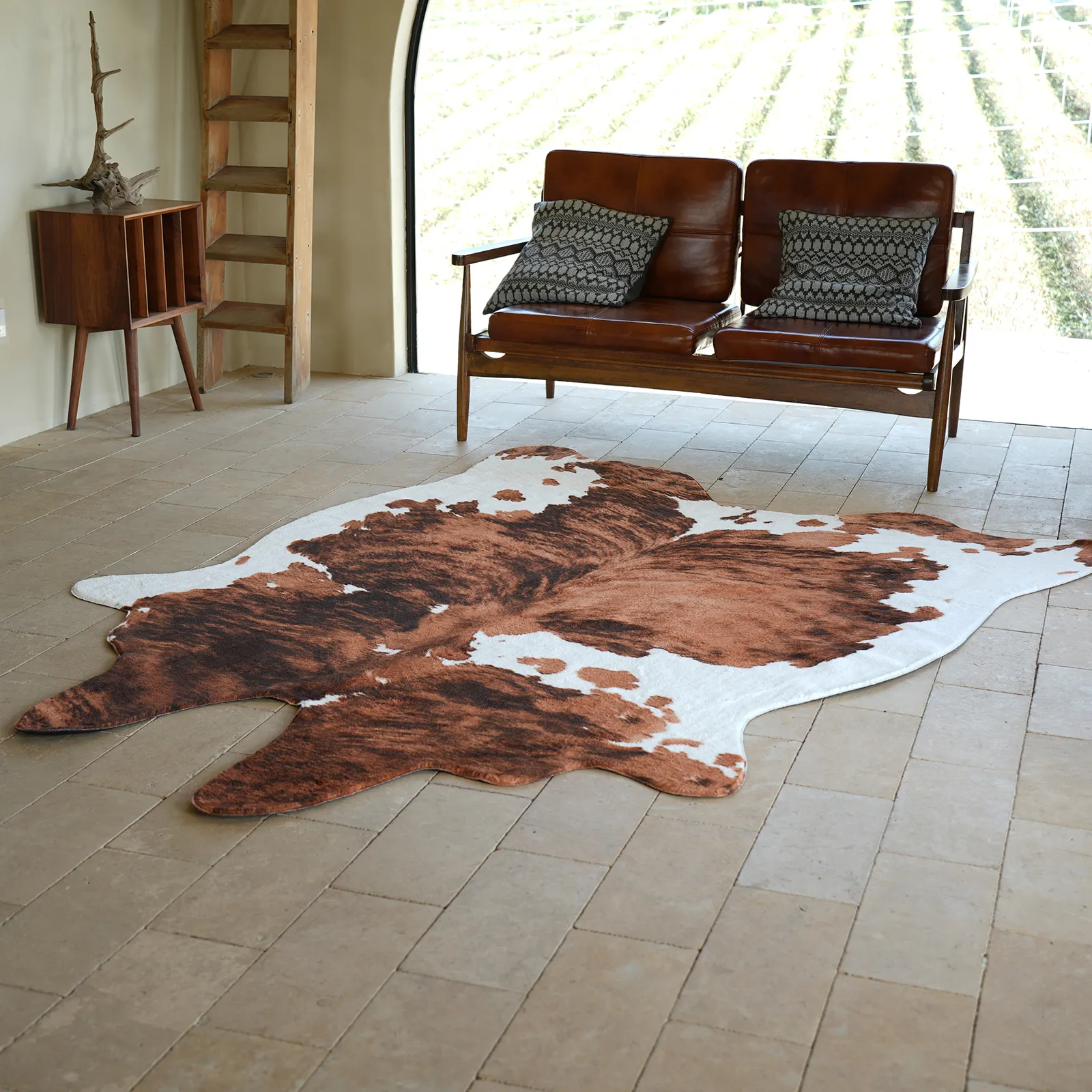 ゴージャスなフェイク・カウハイド・ラグリアルな質感と豊かな色彩でデザインされたこの贅沢なフェイク牛革ラグで、空間を格上げしましょう。リビングルーム、ベッドルーム、オフィス、ダイニングルームなど、どんな部屋にも快適さとヴィンテージで素朴な雰囲気をプラスします。