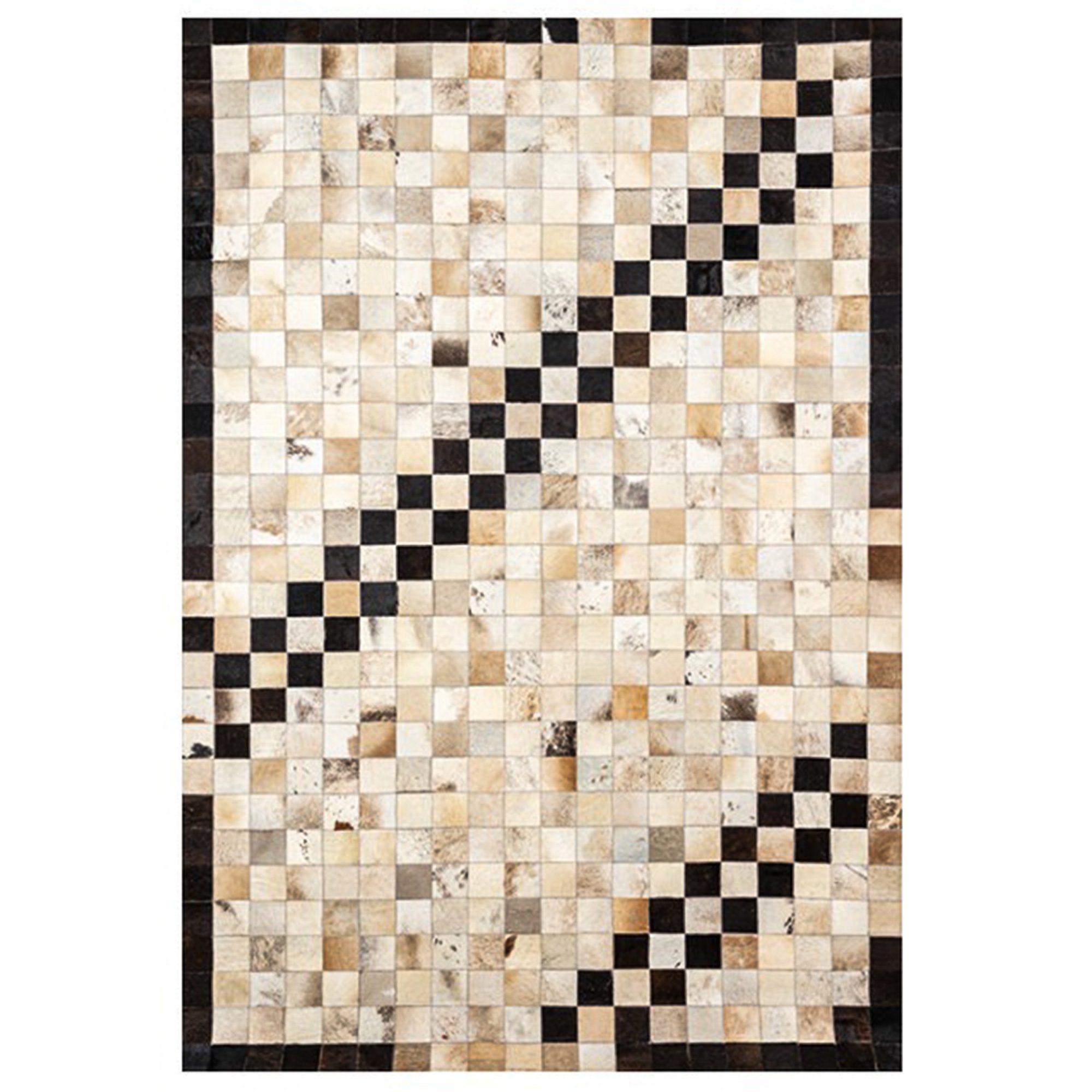 Dit patchwork vloerkleed is gemaakt van zorgvuldig geselecteerde echte koeienhuid en is een verbluffende mix van ambachtelijk vakmanschap en modern design. Elk stuk is uniek en toont de natuurlijke texturen en tinten van echte huiden. Duurzaam en toch stijlvol, past het bij een breed scala aan interieurstijlen, van Scandinavisch minimalisme tot industrieel chic. Perfect voor vloeren of als opvallende muurhanger.