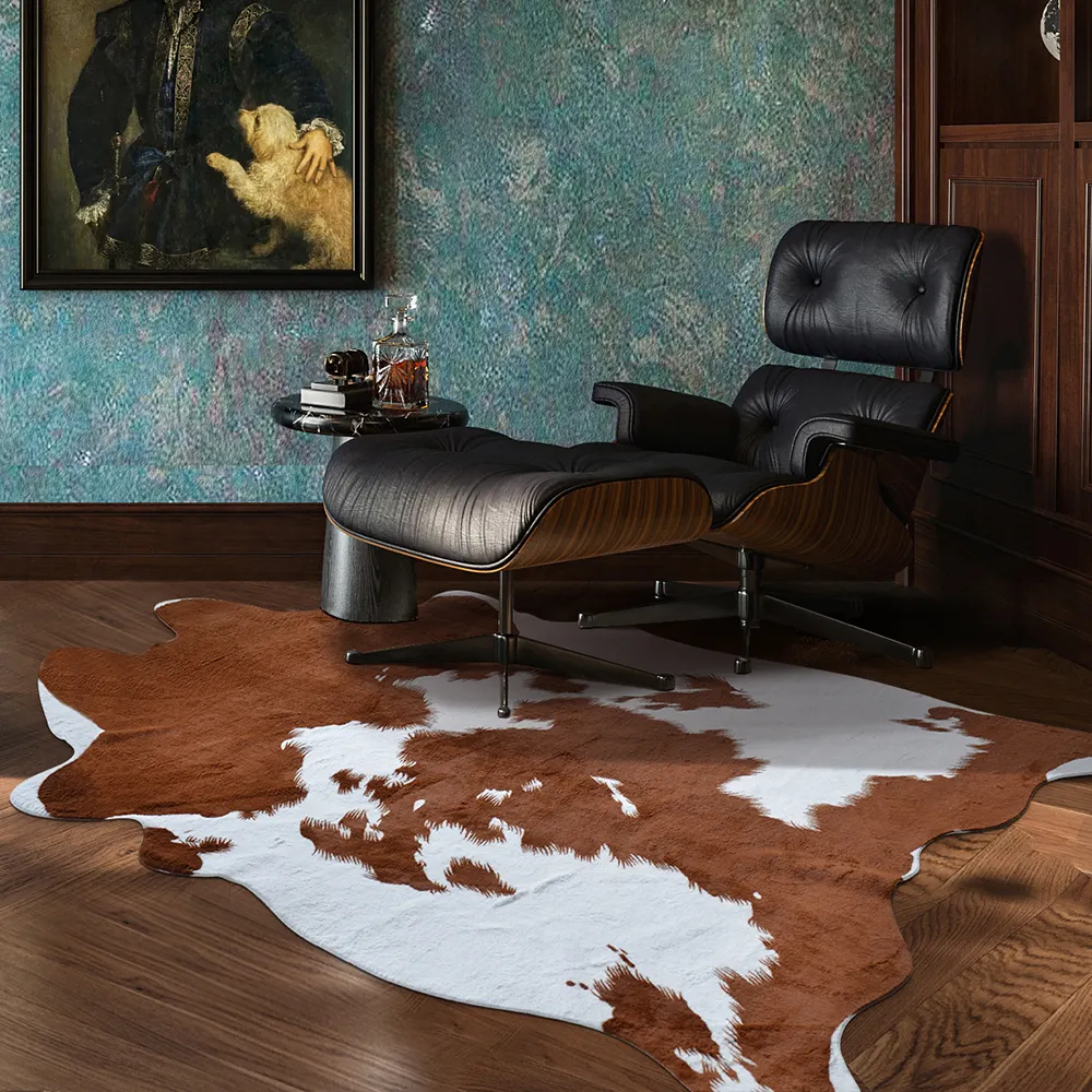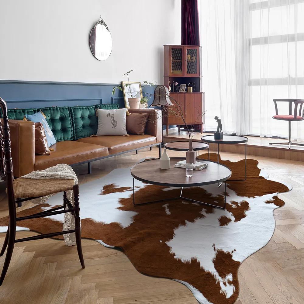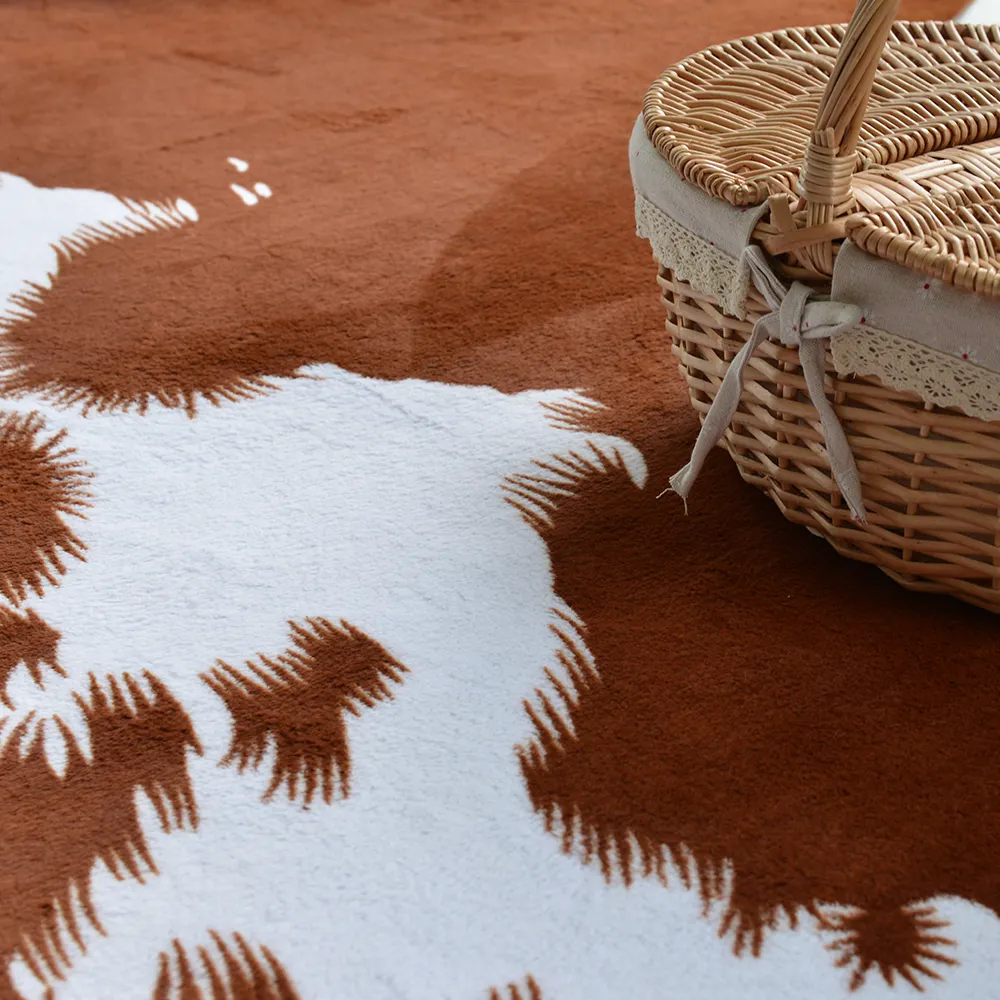 Brown And White cow skin Rug Faux Cowhide Rug Cow Print Faux Fur Rug, Living Room Bedroom Baby Room, Rustic Western Accents - COWKOBE