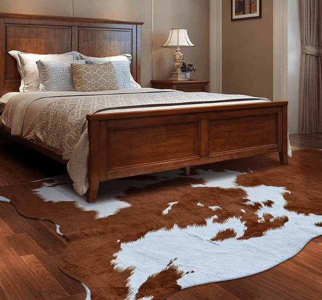 1. Brown And White cow skin Rug Faux Cowhide Rug Cow Print Faux Fur Rug, Living Room Bedroom Baby Room, Rustic Western Accents photo review