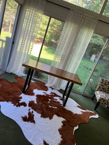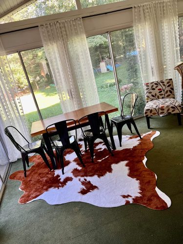 Ik heb het perfecte koeienhuid vloerkleed gevonden voor mijn kleine kantoor/schuur! Het is zo zacht! Voelt heel fijn onder mijn voeten! Ik ben echt dol op dit artikel.