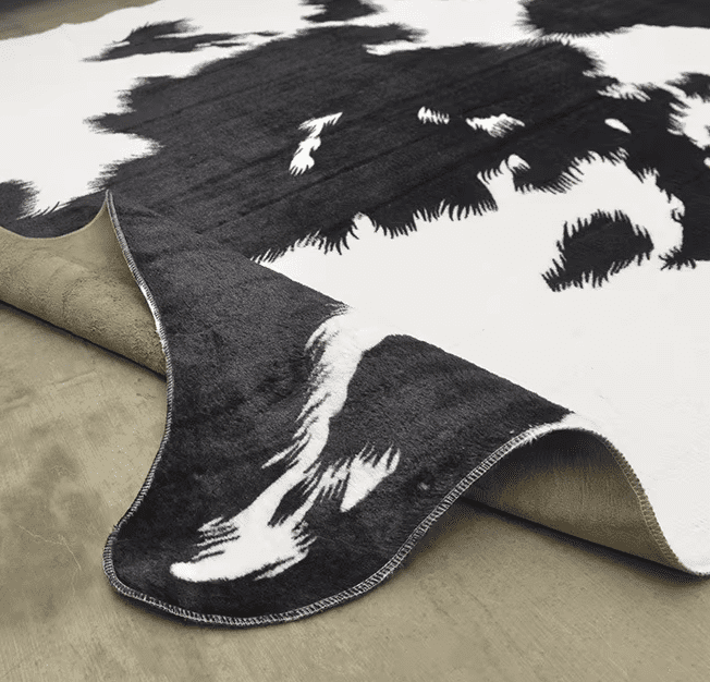 1. Black And White Cow Skin Rug Faux Cowhide Rug Modern Cow Print Rug Faux Fur For Living Room Bedroom Baby Room photo review