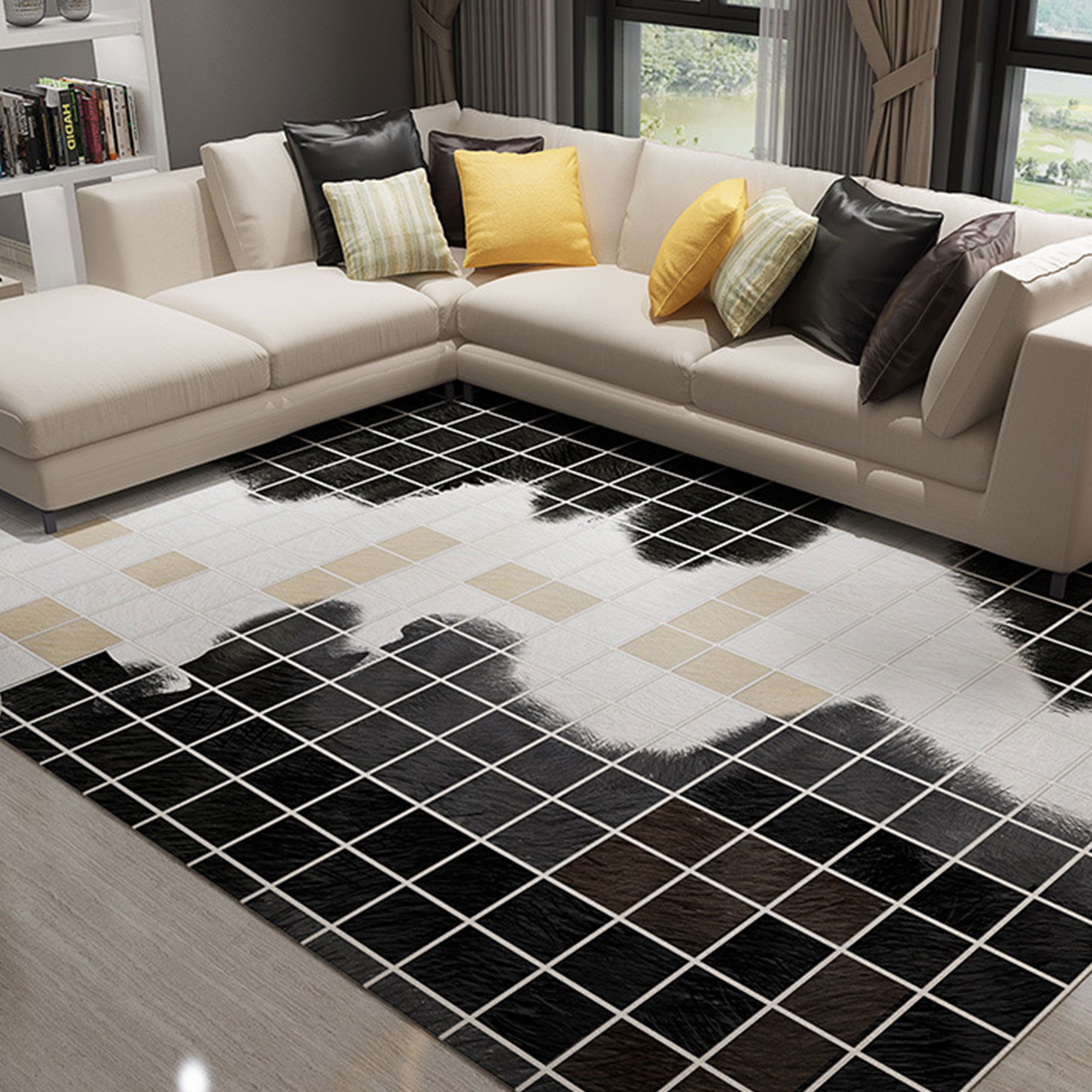 Patchwork Faux Cowhide Rug,Black And White Patchwork Rectangular Carpet Western Decor Cow Print Rug for living room,bedroom Square Designs