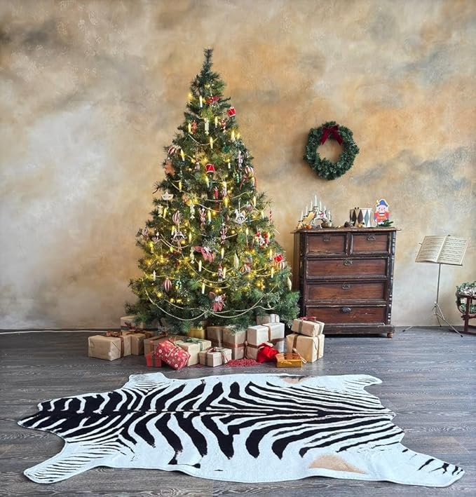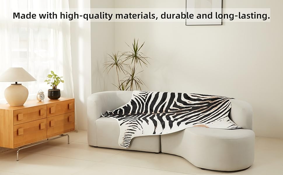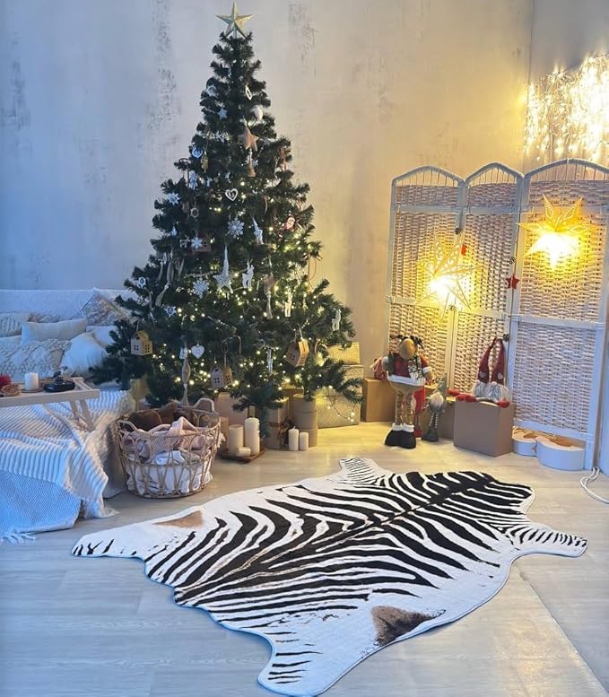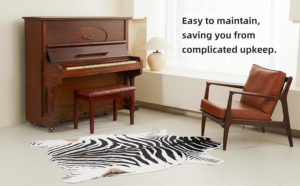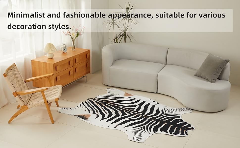 Lindo tapete de couro falso de vaca:Eleve seu espaço com esse luxuoso tapete Cowhide Rug Zebra, projetado com texturas realistas e cores ricas. Ele acrescenta conforto e uma vibração vintage e rústica a qualquer cômodo - sala de estar, quarto, escritório, sala de jantar e muito mais.