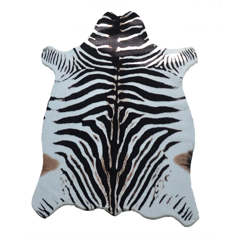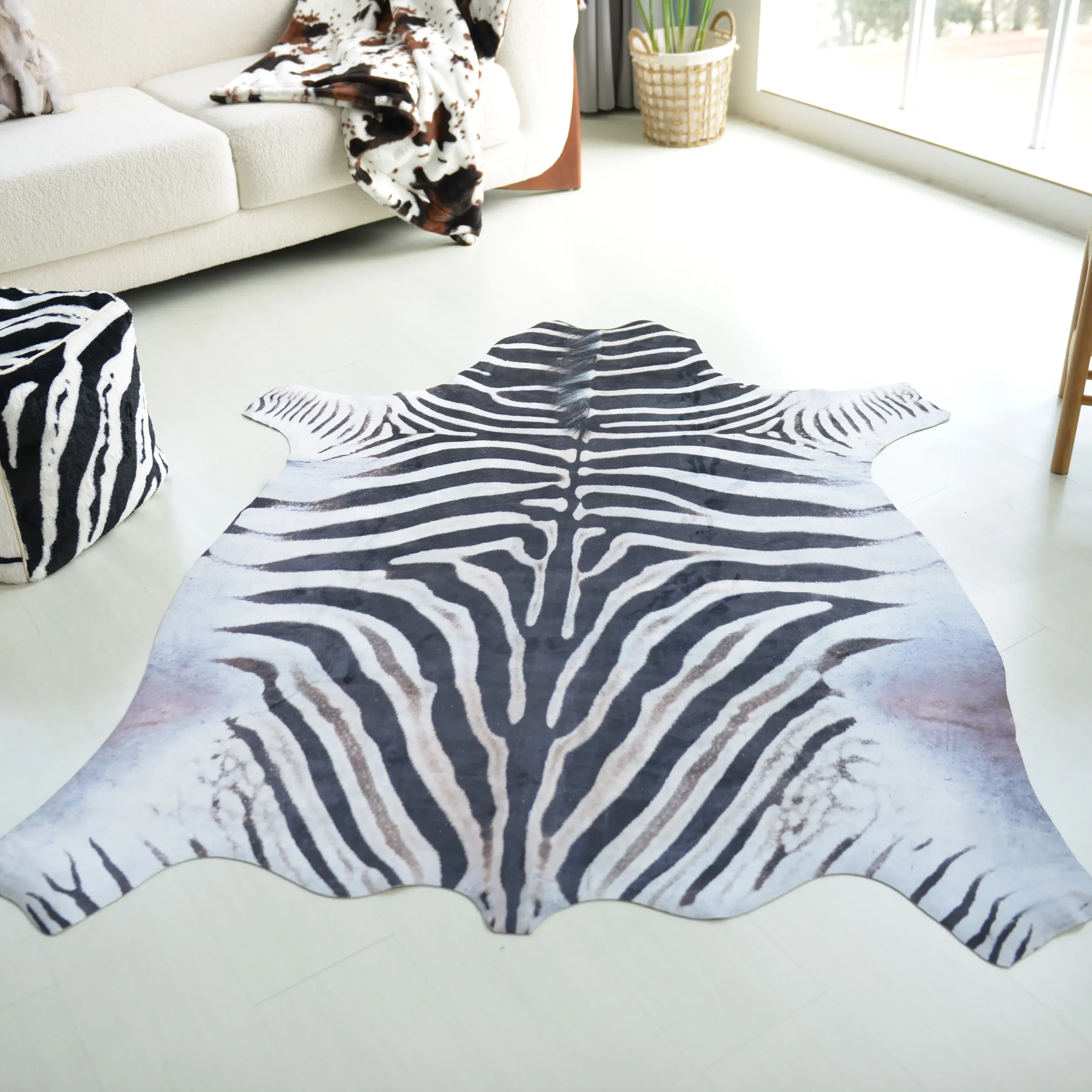 Tapete de couro de vaca Zebra Tapete de couro falso preto e branco com estampa de zebra para decoração de sala de estar, quarto, escritório ou quarto de bebê