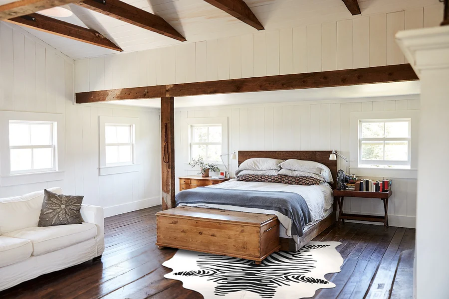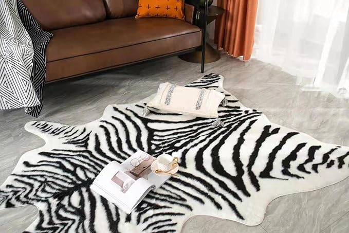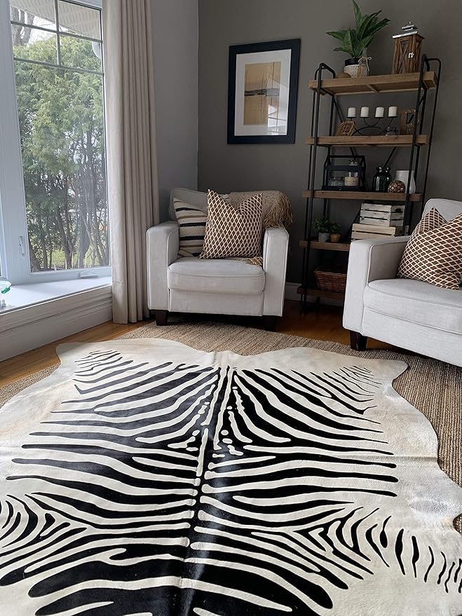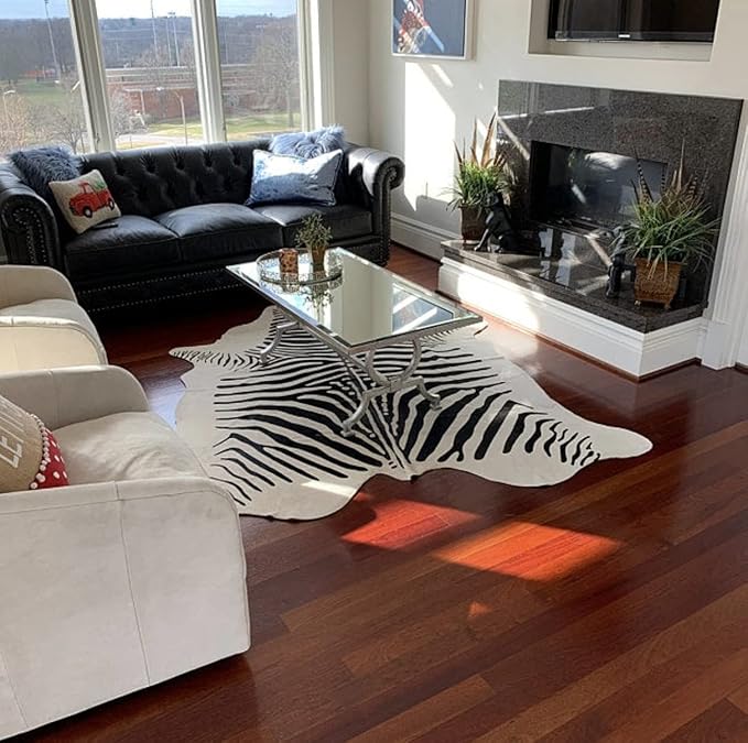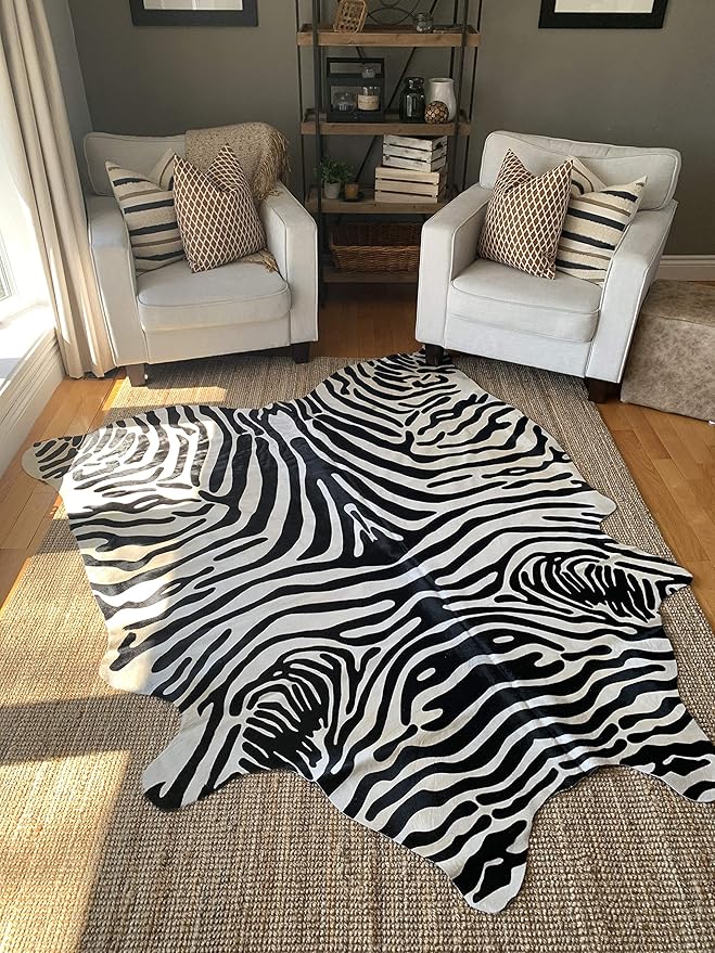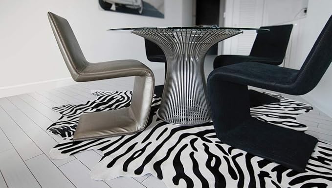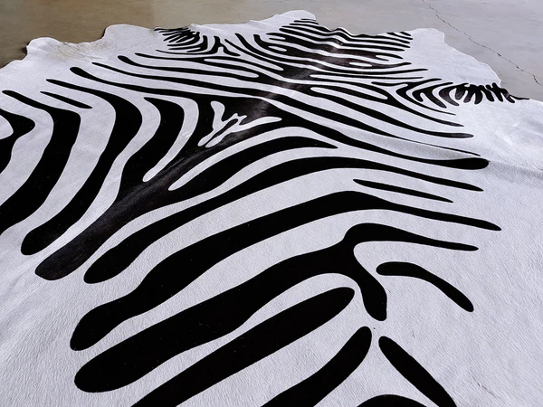 Our Zebra Cowhide Rugs are decorated with stunning black stripes against a background of white shades. These neutral tones will blend perfectly with your interior design while adding a striking focal point.